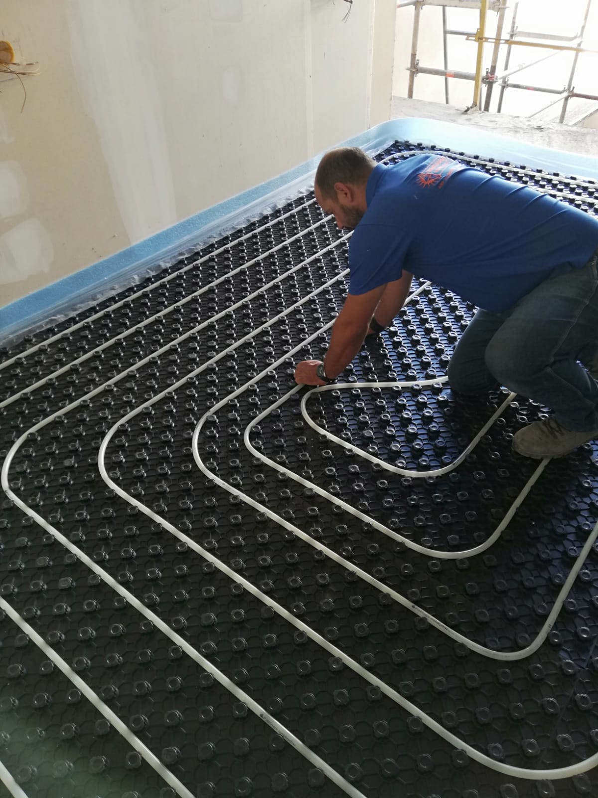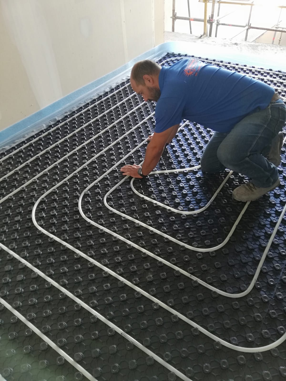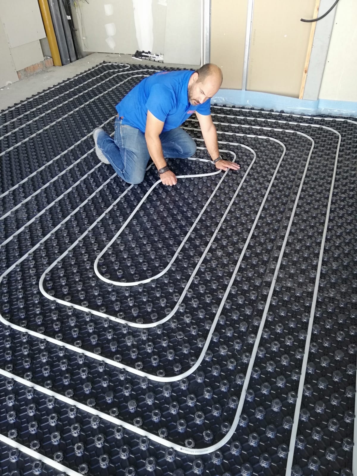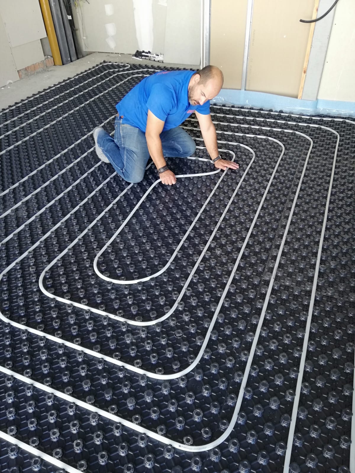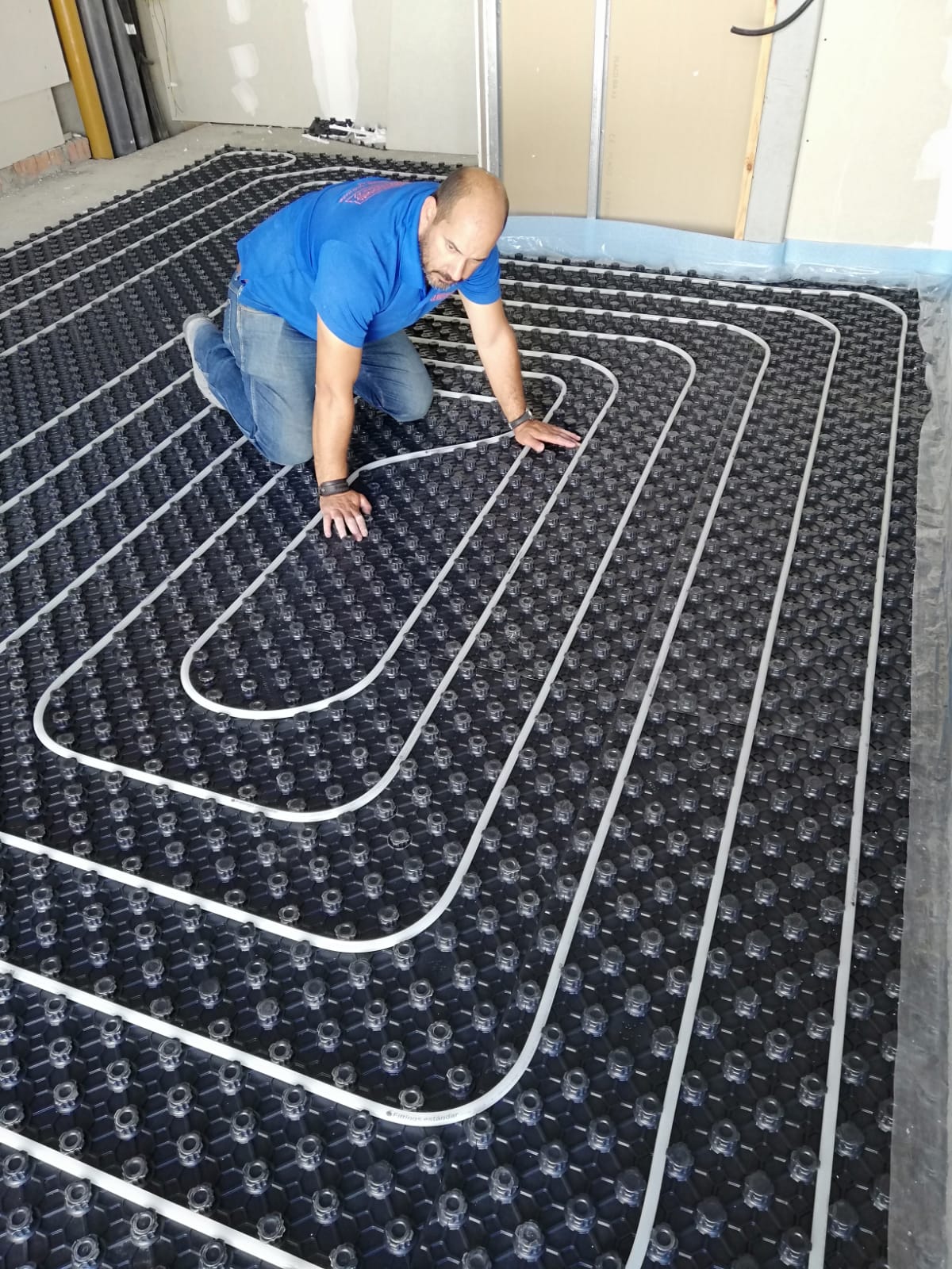 Los sistemas de climatización por suelo radiante basan su funcionamiento en una red de tubería plástica que, instalada bajo el pavimento y de una capa de mortero, hace circular agua caliente o fría por toda la superficie, lo que provoca que el calor o el frío se irradie desde el suelo.